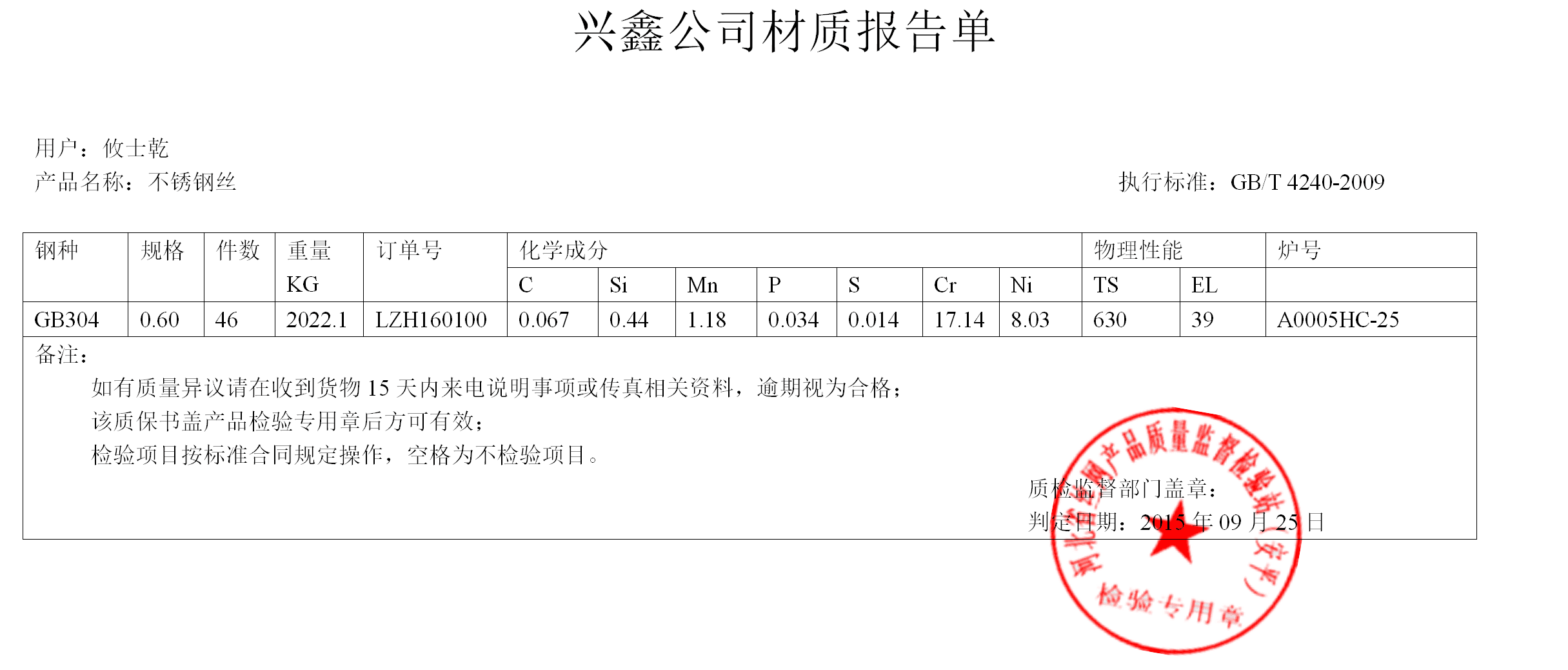 兴鑫公司是一家专业生产不锈钢网的产品,每批货都可以出具不锈钢丝的检验报告。